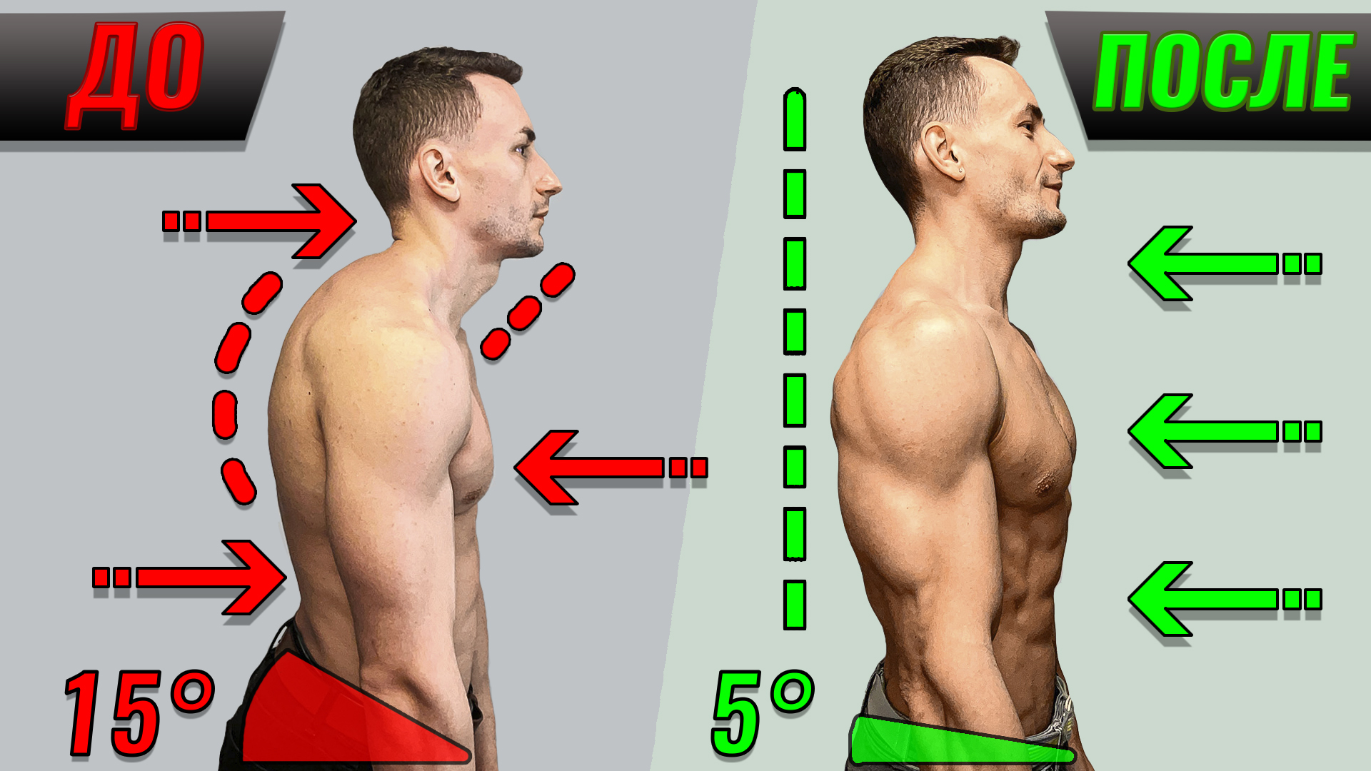 Получить программу тренировок — vladlitvinenko.com ✅ Программа подбирается в соответствии с данными вашего тела ✅ Учитывается ваш возраст, дневная активность и опыт тренировок ✅ Программа постепенно усложняется по мере роста вашей тренированности и приобретается один раз. Никаких ежемесячных платежей ✅ Вы научитесь правильно выполнять каждое упражнение тренировочного плана, избегая ошибок и травм ✅ Если у вас возникают вопросы по ходу занятий — вы всегда получаете ответы лично от меня Влад Литвиненко ● Дипломированный тренер ● Сертифицированный участник конвенций Nike и Reebok ● Тренер команды Adidas к международным соревнованиям Adidas Creators Games на протяжении 3 сезонов ● Автор 300+ информационных видео и статей о тренировках ● Эктоморф, который натурально набрал 25 кг мышечной массы (с 59 кг до 84 кг) с процентом жира 9.3 ● Опыт персональных и групповых тренировок с клиентами — более 10 лет Соцсети: Канал Telegram — t.me/vlad_training Сообщество ВК — vk.com/litvinenko_training Если у вас возник вопрос – напишите мне: 📲 Телеграм: t.me/vlad_litvinenko 📲 WhatsApp: wa.me/+79779217743 Привет, друзья! Как выровнять осанку за 5 минут в день. В этом видео! На вашу осанку каждый день давит неправильное положение тела. И чем больше времени вы в таком положении проводите, тем больше тело к нему адаптируется и привыкает. Виноваты тут как сидячая работа, так и положение тела во время отдыха, за рулём, и даже тогда, когда вы смотрите в телефон. К счастью, выровнять осанку можно довольно быстро. Но для этого важно понимать принцип того, как она исправляется. Само искривление возникает, потому что мышцы теряют тонус и из-за долгого сидения одни из них становятся короче и жестче, а другие находятся в постоянно растянутом состоянии и из-за этого теряют способность поддерживать нормальное положение тела даже когда вы уже не сидите. Кроме того, наши мышцы – это белковая структура, которая не могла бы иметь свою форму, если бы не имела оболочку, которая называется фасцией. Фасции можно представить как костюм, в который одета каждая мышца. И вот эти фасции очень гибкие в здоровом состоянии. Это всегда у молодых людей, а дальше – только у тех, кто физически активен. Если посмотреть на матрицу фасций у таких людей, то она имеет чёткую, направленную сеть коллагеновых волокон. И она более эластична. Потому что используется во время бега, силовой тренировки или любой другой активности, которая включает растяжение и сокращение мышц с усилием. И наоборот. Если посмотреть на фасции человека, который физически малоактивен, то сеть волокон становится разнонаправленной, а фасция более жёсткой. Волокна слипаются и образуются тканевые спайки. Это именно то, к чему ведёт долгое сидение и отсутствие тренировок. Поэтому, чтобы выпрямить осанку, нам нужно сфокусироваться как на повышении тонуса мышц, так и растянуть закрепощённые, хронически укороченные мышцы. Вместе с этим мы улучшаем эластичность фасций, что даст вам и правильную осанку, и здоровое ощущение гибкости вашего тела. Итак, первое упражнение. #1 Станьте спиной к стене, так чтобы ваши ягодицы, лопатки и затылок касались её. Из этого положения начинайте тянуться макушкой вверх, к потолку. Здесь напрягаются мышцы передней поверхности шеи и растягиваются задние шейные мышцы. Ваша задача – задержаться в крайней верхней точке на 10 секунд. И отсюда, также плавно, вернуться в и