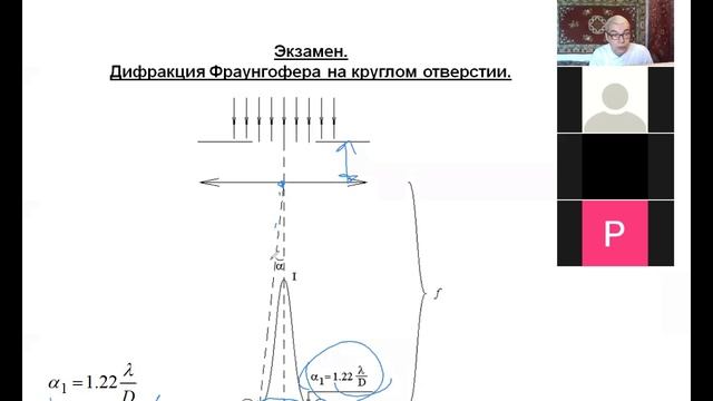 22 лекция, часть 3, Оптика, СПбГУ, 2021, Крылов И. Р. Зонная пластинка. Фокус зонной пластинки. Отношение интенсивностей в фокусах линзы и зоной пластинки. Ложные фокусы зонной пластинки. Дифракция Фраунгофера на круглом отверстии. Дифракция Фраунгофера на одной щели.