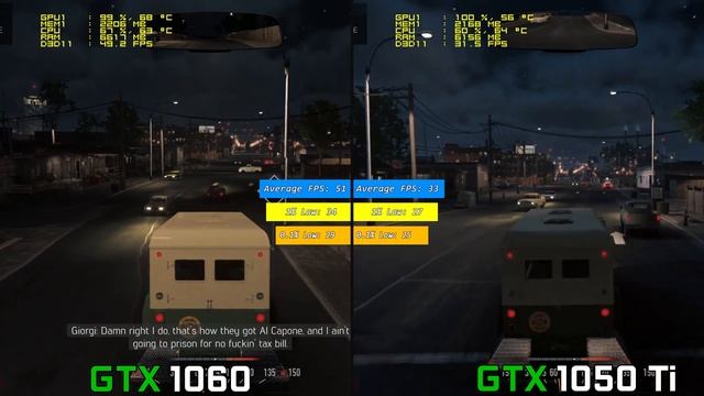 GTX1050 Ti vs GTX1060 Mafia 3 FPS Benchmark Side by Side Comparison
