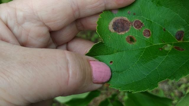 Темные пятна на листьях яблони.Кружковая моль