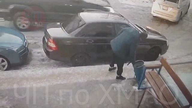 В Нижневартовске мужик, еле стоящий на ногах, попытался забраться в чужую заведённую машину