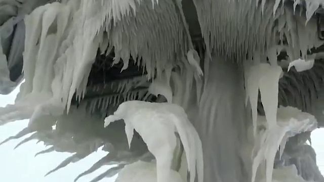 Заледеневший пирс в Сент-Джозефе (Мичиган, США, 13.12.2024).