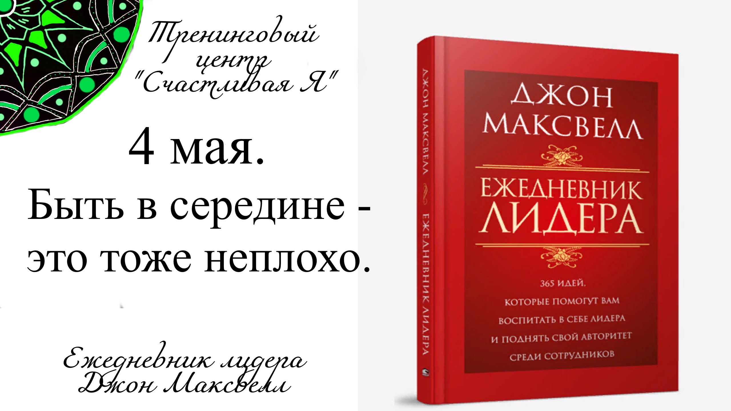 Джон Максвелл. Ежедневник Лидера. 4 мая. Быть в середине - это тоже не плохо. Джон Максвелл. Ежедневник Лидера. 4 мая. Быть в середине - это тоже не плохо. Джон Максвелл. Ежедневник Лидера. 4 мая. Быть в середине - это тоже не плохо.