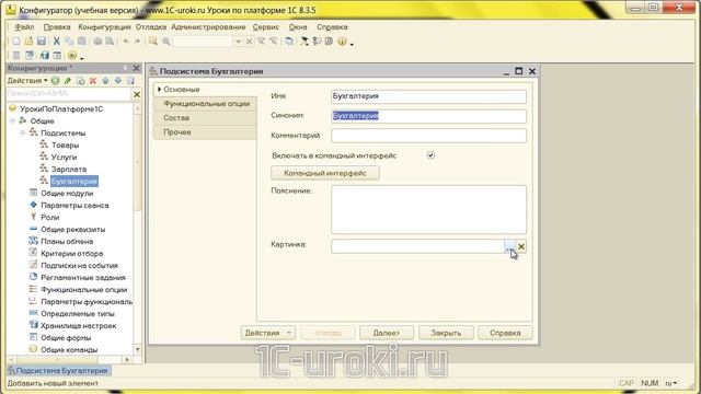2 урок курса 1С 8.3. Подсистемы. Настройка панели разделов (13м)