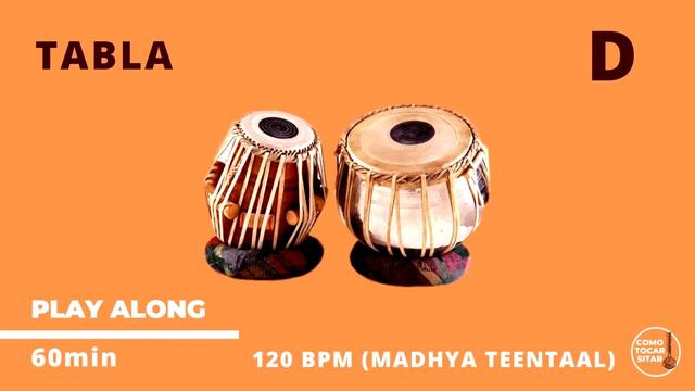 PLAY ALONG - 60 MIN TABLA " D " 120 BPM MADHYA TEENTAAL (16 BEATS)