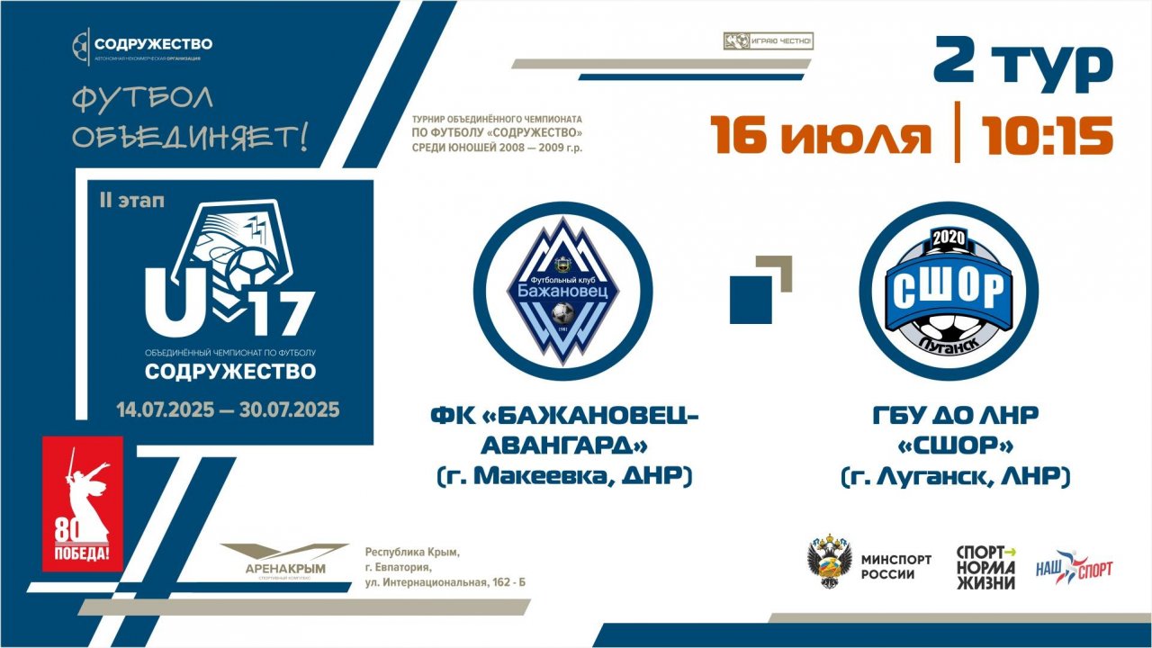 2 ТУР | U-17 | ФК «Бажановец-Авангард» (г. Макеевка, ДНР) – ГБУ ДО ЛНР «СШОР по футболу» (г.Луганск)