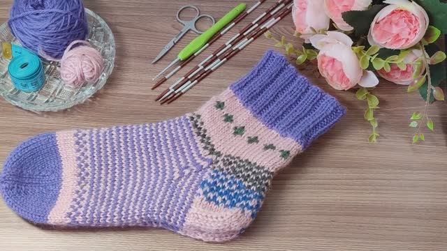 Носочки из остатков - "Сиреневый туман"
