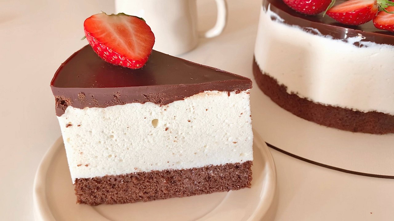 ШОКОЛАДНЫЙ БИСКВИТ НА ЖЕЛТКАХ Ингридиенты: Желтки 100гр Ванильный сахар 1 пакетик Соль 1/4 чайной ложки Сахар 115гр Молоко 150мл Растительное масло 40гр Крахмал 10гр Мука 100гр Какао 50гр Разрыхлитель 7гр Выпекаем при 170 градусах 25-35 минут СУФЛЕ Ингридиенты: Белки 170 гр (5 яиц 1 сорта) Соль 1/4 чайной ложки Лимонный сок 1 чайная ложка Сахар 250 гр Вода 80 гр Ванилин либо его аналоги Желатин 20 гр (200 блюм) +90 гр молока Сливочное масло 120 гр Сгущёное молоко 60 гр ПРОПИТКА Сгущёное молоко 70гр Тёплое молоко 40гр ГАНАШ Молоко 20 гр Сливочное масло 20 гр Шоколад 60 гр Готовый торт убираем в холодильник на 6-8 часов Приятного чаепития!
