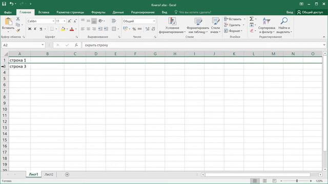 Как в Excel отобразить, скрыть строки