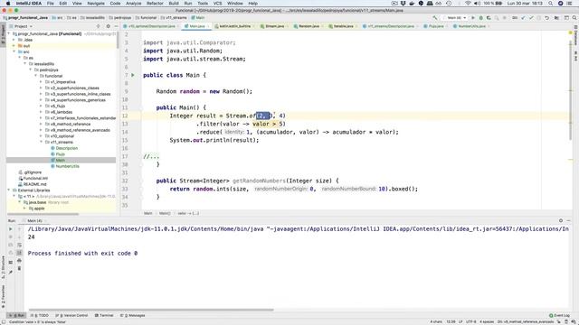 Proyecto de demostración de Programación Funcional en Java. En este vídeo vemos las distintas versiones del método reduce() en streams