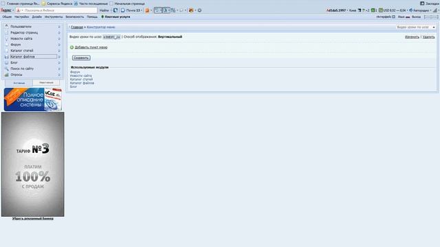 2-урок UcozTV2 "Как сделать дополнительные меню для сайта"