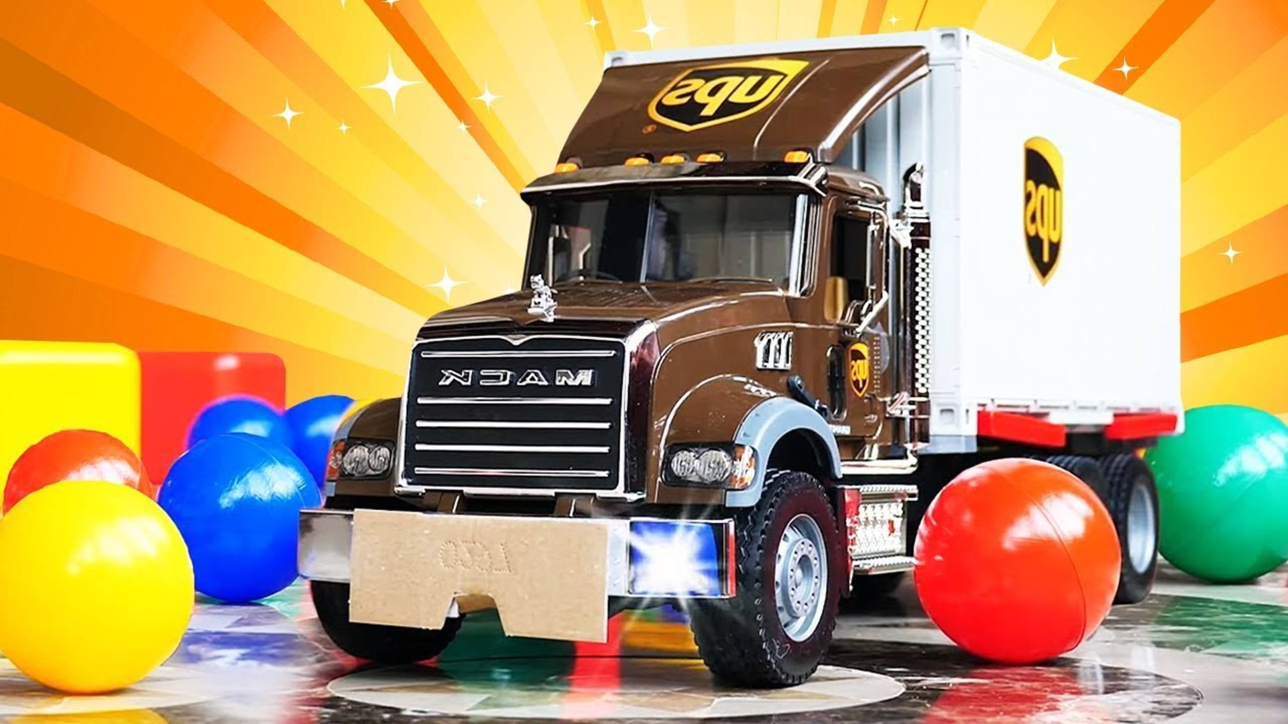 Видео для детей. Распаковка игрушек: Грузовик забирает груз у Погрузчика