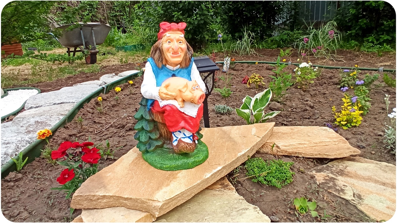Садовая фигурка Баба-Яга и цветник. Создаём сад с нуля.