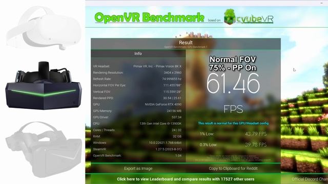 Pimax Crystal | 8kx | Quest 2 - OpenVR Benchmark Results - Nvidia 4090 & i9 13900k