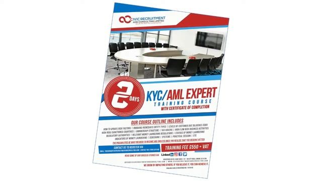 A CAREER-DEFINING OPPORTUNITY - NOW IS THE TIME TO EXECUTE AN OPPORTUNITY. Are you seeking to start a new career or interested in changing your career? If yes, our highly recommended Know Your Customer (KYC) / Anti-Money Laundering (AML) Expert Training Course is worth considering.