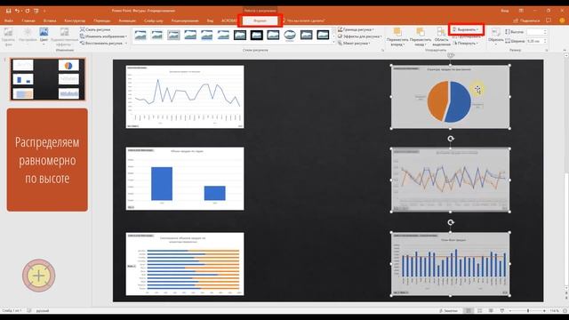 #tdots #powerpoint #выравнивание Часто в презентации на слайде находится множество объектов, которые нужно быстро и красиво разместить. Используйте команды групп "Упорядочить" и "Группировать" на вкладке "Формат", чтобы сделать это быстро и точно. Немного практики - и выравнивание объектов на слайде будет занимать не более минуты. Наши обучающие видеокурсы по Excel можно найти тут: https://tdots.ru Поддержать проект можно здесь: http://yasobe.ru/na/tdots С уважением, команда tdots.ru