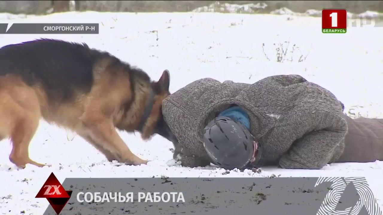 Владимир Королёв: "В ведении Островецкой заставы почти 30 км белорусско-литовской границы. Ежедневно зелёные береты мониторят КСП. Даже на линии припорошенной снегом отчётливо видны следы животных. А вот если пограничники обнаружат следы человека, мгновенно поступает команда «Застава в ружьё». В Беларуси созданы около 50-ти погранпереходов для въезда и выезда за рубеж. Все остальные попытки пересечь границу – нелегальны и караются по закону. (6283 – Супрун переходит границу ) Инфракрасные лучи, сейсмические датчики, оптоволоконная сеть вдоль забора – нарушитель ещё не подошёл к ограде, а техника уже фиксирует его присутствие. Ни одно подобное задержание не обходится без служебной собаки. Пёс знает, куда занесёт их служба. Александр КАРАНКЕВИЧ, командир отделения службы собак пограничной заставы «Островецкая»: "Для чего она нужна на границе? – Для того, чтобы искать нарушителя по запаховому следу. Главный вид тренировки – это следовая работа, которая помогает задерживать нарушителей. Кинолог на заставе – незаменимый человек, а служебная собака – главный козырь в борьбе против нелегалов и контрабандистов. Напасть на след – за ёмкой фразой – месяцы обучения. Но кропотливая работа приносит результат. Артём САЗОНОВ, начальник службы собак пограничной заставы «Островецкая» : "Собака служит 8 лет. После, если позволяет здоровье, создаётся специальная комиссия. Принимается решение, либо отправить собаку на заслуженный отпуск, либо продолжать охранять границу. Нормативы есть, как и в следовой работе, так и в обучении общего курса тренировки. У собак есть также специальность – розыскная, сторожевая и строевая. 44:05 Розыскная собака – опытная, работает большое расстояние по следу, с большей давностью по времени. У сторожевой требований меньше. Но сторожевые стремятся к тому, чтобы статье розыскными". Чтобы собаки становились профессионалами, их нужно готовить к сложной, но интересной работе. Этим и занимаются кинологические центры. Владимир КОРОЛЁВ: " Нет такой техники, которая может заменить мохнатых специалистов на границе. Ежегодно этот центр в Сморгони готовит более 400 кинологов и служебных собак. Спустя 5 месяцев обучения эти специалисты готовы к работе на погранзаставах и в пунктах пропуска". Тренировки здесь идут уже четверть века. В этих стенах собачья жизнь расписана по графику. Обучение и тренинги по несколько часов в день. Для разной работы нужна своя порода и определенный характер питомца. Константин СОЛОВЕЙ, первый заместитель начальника кинологического центра органов пограничной службы: "В п/п мы больше используем лабрадоров, которые работают с людьми, не подвержены стрессам. Естественно способны находить наркотики и взрывчатку. Немецкие и бельгийские овчарки используются в розыскной службе, которые могут длительно вести поиск за нарушителем, могут задерживать его". В мире собак учат распознавать по запаху даже болезни человека. Например, проблемы с щитовидной железой, печенью, некоторые раковые заболевания. Новинка этого года для носа-детектора – запах коронавируса. Питомцы, обучаемые для работы на границе, ищут наркотики, психотропы и взрывчатку. Юрий ШУППО, начальник курса кинологического центра органов пограничной службы: "Изначально мы собак учим на один запах. Одна баночка, когда она к этой банке подходим, м