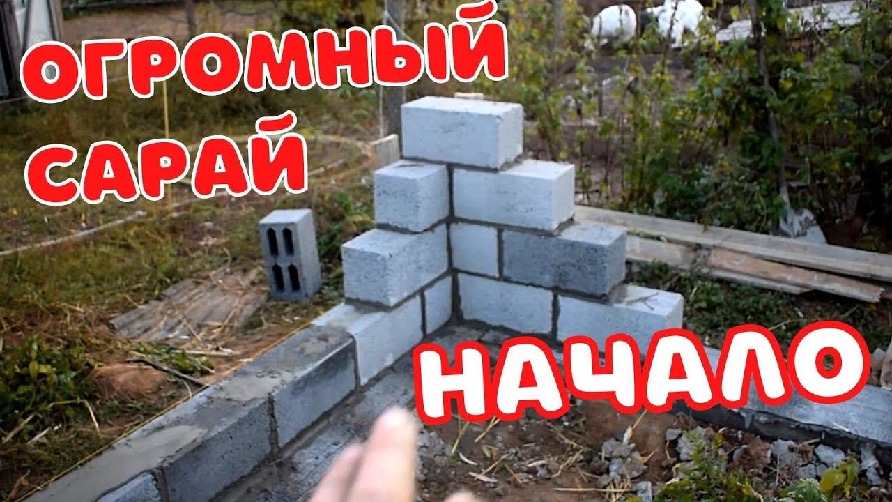 Строим БОЛЬШОЙ сарай 15х9. Кладка углов из блоков. Выравнивание фундамента. Положили гидроизоляцию.