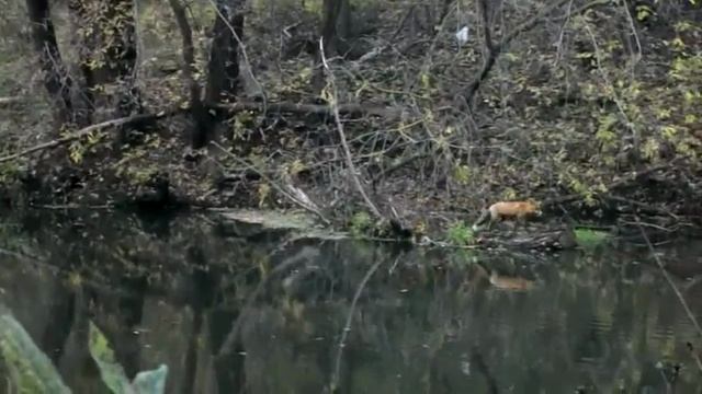 Вернулась, решилась, поплыла. Купание рыжей лисы.