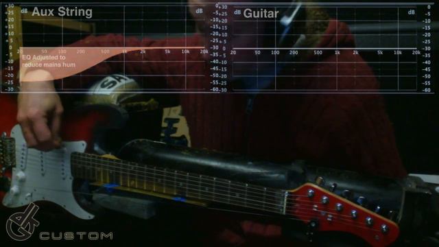 http://www.DKG-Custom.com DETAILS MISSED IN VIDEO WILL BE ADDED HERE DON'T FORGET THAT THIS IS NOT ABOUT THE ACOUSTIC SOUND OF A GUITAR, BUT HOW ANYTHING AFFECTS THE SIGNAL FROM THE OUTPUT JACK. The brass plate you see is just there for extra shielding from the closer strings to the auxiliary pickup.