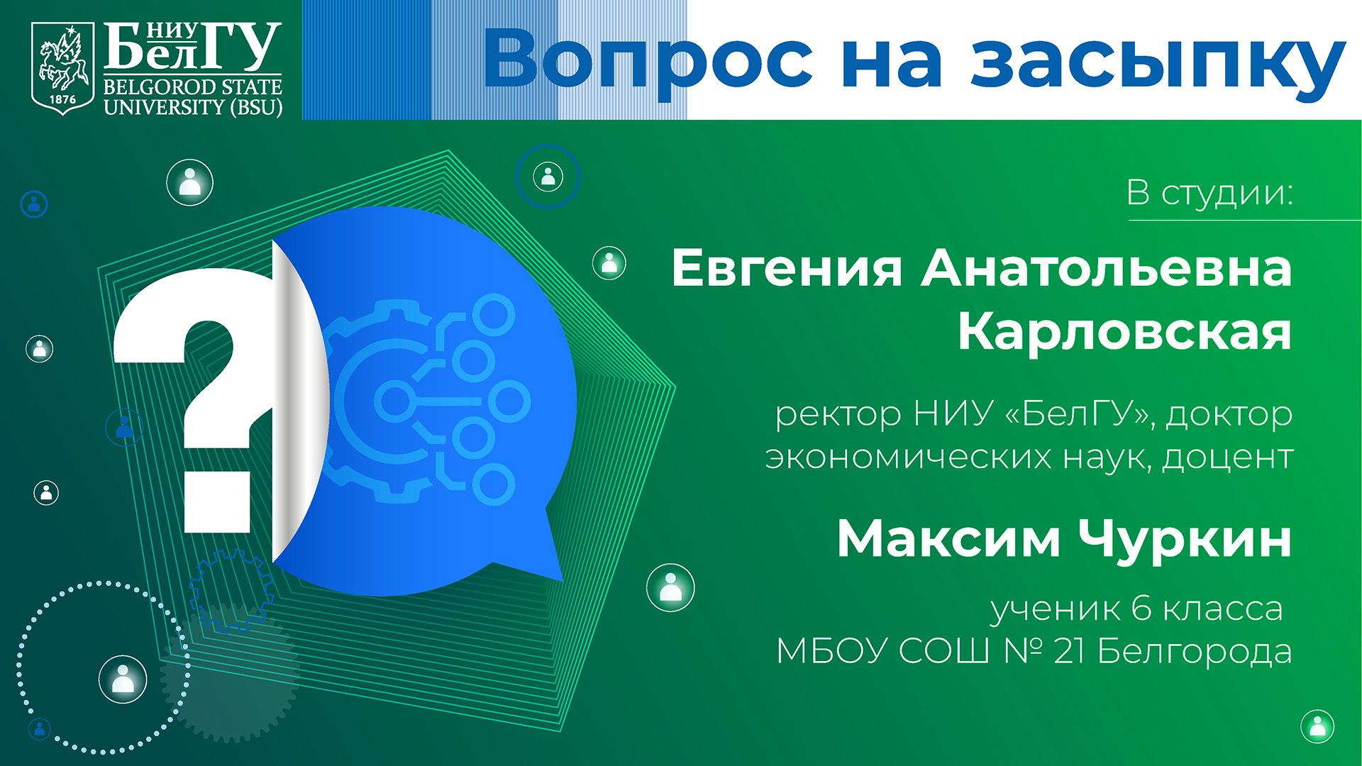 Первое интервью Евгении Карловской в должности ректора НИУ «БелГУ» Интервью состоялось в рамках проекта «Вопрос на засыпку». Интервьюером стал слушатель школы журналистики ИОНиМК НИУ «БелГУ» – ученик 6 класса МБОУ СОШ № 21 города Белгорода Максим Чуркин. Максима интересовало, в чём в целом заключаются обязанности ректора и чем Евгении Анатольевне запомнился первый день в статусе руководителя вуза; как должны меняться университеты, чтобы соответствовать запросам современного поколения; с какого возраста нужно заниматься с детьми профориентацией и чем в принципе может заинтересовать будущего первокурсника Белгородский госуниверситет. Из интервью вы узнаете, как ректор относится к онлайн-образованию и насколько развита в вузе внеучебная деятельность, а также, как Евгения Анатольевна проводит своё свободное время и есть ли у неё желания, исполнения которых она очень ждёт…