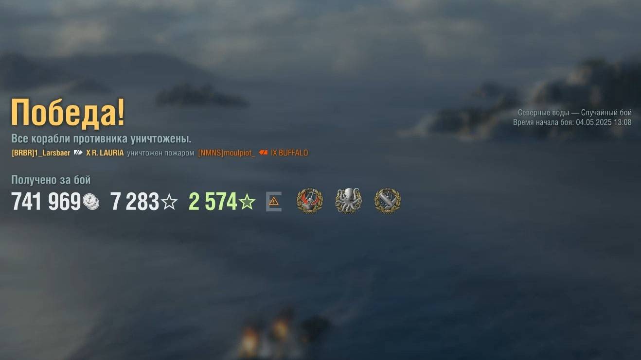 Линкор Ruggiero di Lauria. Игрок: 1_Larsbaer (EU). Карта: Северные воды - Случайный бой. Урон: 301к. Ruggiero di Lauria - Линкор Италии 10 уровня.
