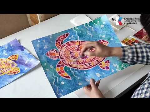 Мастер-класс «Морская черепаха» Учимся рисовать: рисование вместе с детьми #ОмскСтрим #музейВрубеля