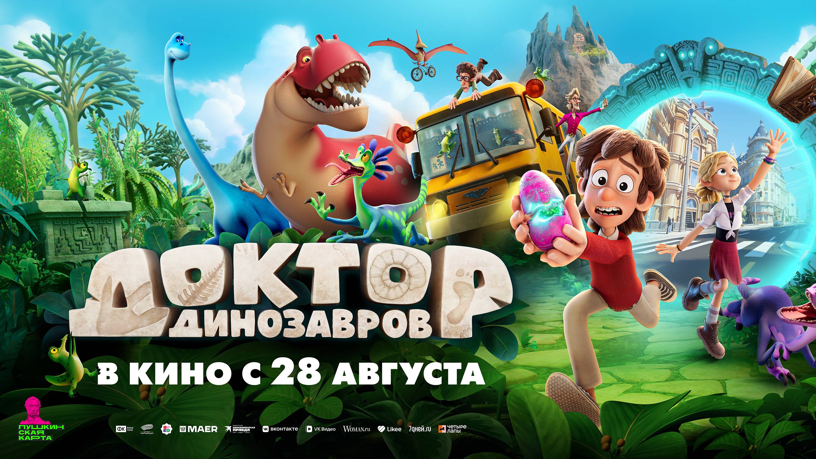 Кинозал ДК приглашает с 28 августа на мультфильм "Доктор ДИНОЗАВРОВ" 2D 6+, 90 мин. Пушкинская карта