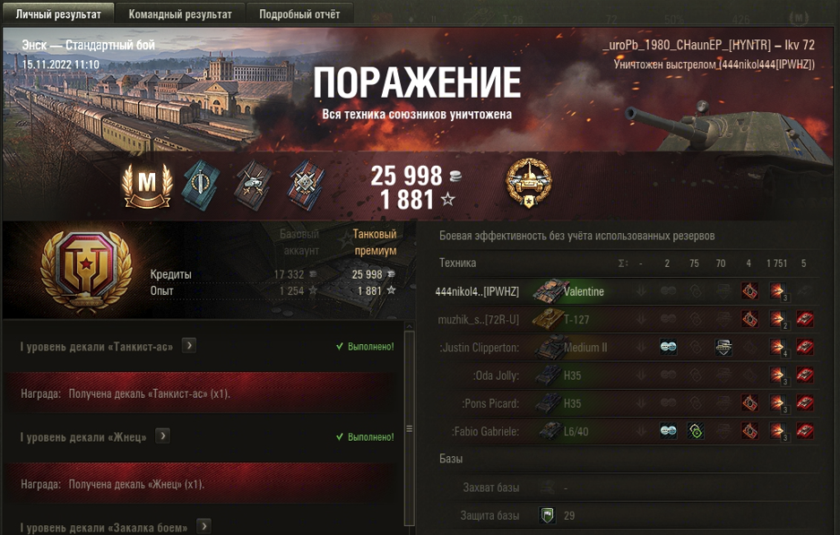 ЭНСК МАСТЕР на Ikv 72 ОПЫТА: 836 СУММАРНОГО УРОНА: 1826 медаль ОСНОВНОЙ КАЛИБР 5 ФРАГОВ