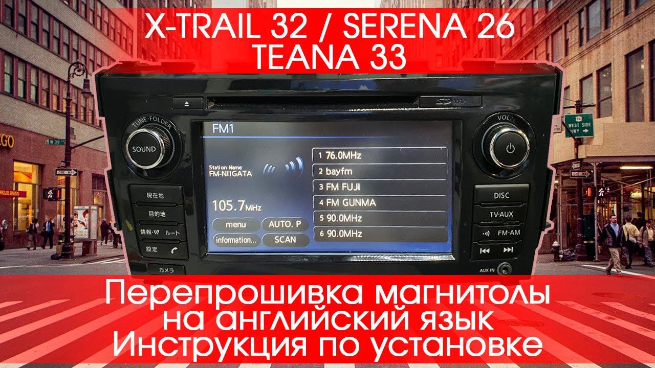 Nissan (Japan) Teana 33, Serena 26, X-trail 32 - Английское меню, евро-радио УДАЛЕННО, ПРОШИВКОЙ! Сылка на свежее обновление для наших клиентов: https://drive.google.com/open?id=1q9z1qFXWkaC6txfdYEcXjVMsu9MXzRPj&authuser=xanavi.eng%40gmail.com&usp=drive_fs Представили подробное видео как заменить или правильней сказать избавиться от надоедливых иероглифов в автомобилях с внутреннего рынка Японии. Нам успешно, как обычно удалось справиться и предоставить Вам возможность воспользоваться УДАЛЕННО ПРОШИВКОЙ. Вам не нужно ничего разбирать, паять, отправлять нам. Вам нужно по видео инструкции повторить все действия за нами. Для записи Вам понадобится карта на 16 GB. Данная модификация подходит для следующих праворульных автомобилей, которые выпускались для внутреннего рынка Японии: (Japan) - Nissan Xtrail 32 (2013-2018) - правый руль, с внутреннего рынка Японии QY-7391 (clarion) - Nissan Teana 33 (2012-2018) - правый руль с внутреннего рынка Японии QY-7390 (clarion) - Nissan Serena 26 (2013-2016) - правый руль с внутреннего рынка Японии QY-7392 (clarion) ВСЕ ОБНОВЛЕНИЯ ДЛЯ НАШИХ КЛИЕНТОВ, ВСЕГДА БЕСПЛАТНО!!! После установки прошивки Вы получите: - русский язык / английский язык - радио евро диапазон. - переведенное служебное меню - подписали название радиостанций - автомобиль показывает видео с DVD, мы сняли ограничение для просмотра видео при движении!! Ссылка предоставленная нами необходима клиентам для установки прошивки. Еcли Вы не планируете воспользоваться нашими услугами, скачивать и устанавливать прошивку Вам не следует! Справки по телефону +79626860739 Www.Xanavi.ru