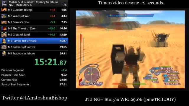 If you're interested in running this Gundam game, or other Gundam games in general, join us over on the Gundam speedrunning Discord found here: https://discord.gg/AxJpY54 You can also find the official Gundam series speedrun leaderboard here: https://www.speedrun.com/gundam No mic for this run, I have explained a lot of the tech for this run in three separate videos and there are no significant changes outside of landing on the Adzam in Mission 5. This would have been a 28 if the Acguy didn't fire a special on the way to the Zock fight. This run also features new tech for M5 that can lead to a better time save if done properly; I fell victim to an unfortunate reload. Additionally, I have picked up on PMC's M8 strats; the beam rifle is unquestionably the best option moving forward. (now if only we can figure out how to get out of the mission faster...) Run still has time saves everywhere, it's over a minute off sum of best. At this point I'm beginning to think major routing changes or new discoveries involving certain things we can use for the good of the run will be needed to push the times lower because at this point, good runs feel like a majority of RNG going the right way. It's not to say there isn't enough skill expression or consistency to build on in the game as much as it is that RNG can kill runs in every mission. (oh and btw...@pmcTRILOGY: I raise you M6/M7 as the worst missions in the game. also, can't wait 'til you hit 28 now so I end up quitting everything and just sticking to Encounters in Space speedrunning)