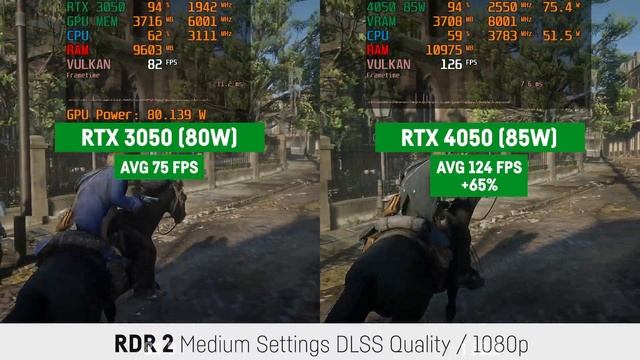 Comparing the Nvidia RTX 3050 (80W Version) with the RTX 4050 (105W Version) in 10 Games! Laptop / Notebook Gaming! Please like & Subscribe if you enjoyed the content :) 00:00 Shadow of The Tomb Raider 00:43 Cyberpunk 2077 01:50 Elden Ring 03:07 Far Cry 6 04:03 Forza Horizon 4 05:25 The Division 2 06:41 Red Dead Redemption 2 08:37 Assassins Creed: Valhalla 09:59 Horizon Zero Dawn 11:13 World of Tanks Systems: Dell G15 5511 RTX 3050 80W 4GB Intel i7 11800H 16GB DDR4 3200 Mhz 512GB SSD WIN 11 vs. MSI Katana 12 B12V RTX 4050 85W 6GB Intel i7 12650H 16GB DDR5 4800 Mhz 1TB SSD Win 11