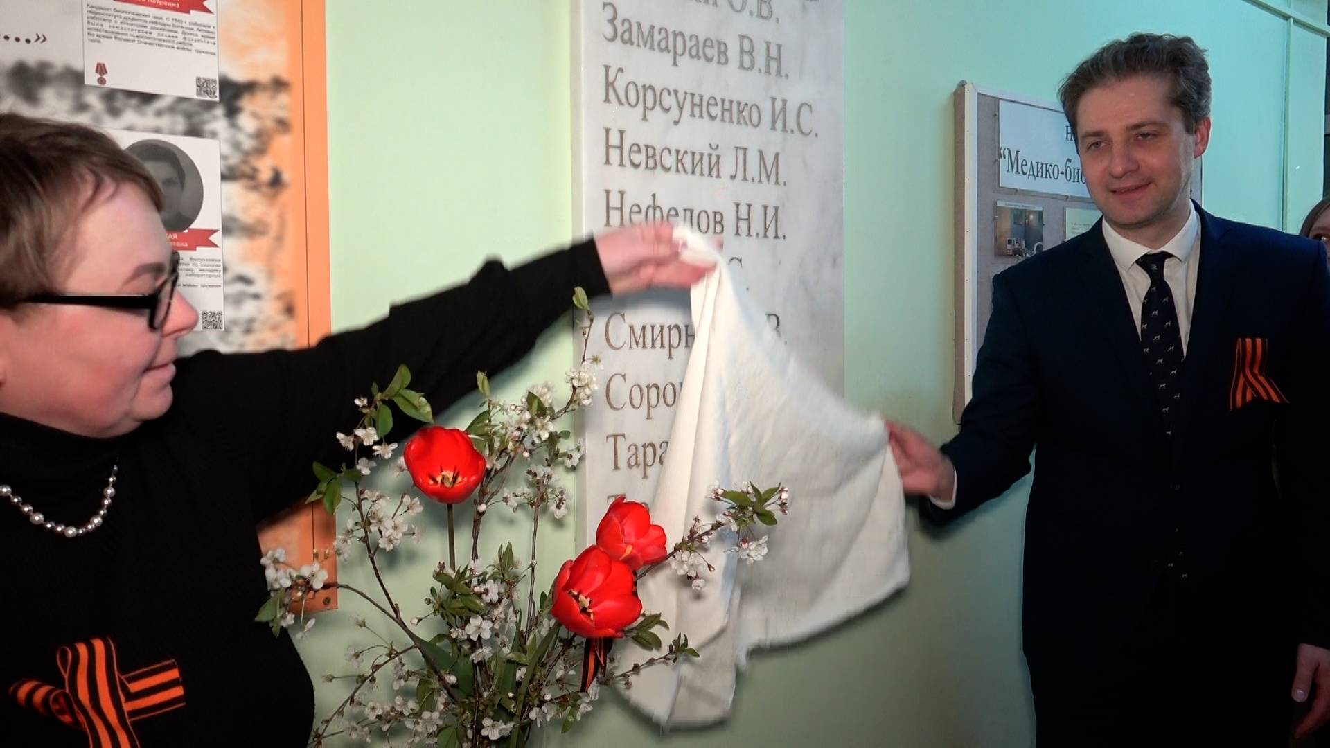 Накануне на биологическом факультете Тверского государственного университета открыли памятую доску с именами преподавателей — участников Великой Отечественной войны. На торжественной церемонии выступил проректор по цифровому развитию и информационным технологиям ТвГУ Павел Валерьевич Кратович, который выразил надежду, что собравшимся на церемонию студентам «никогда не придется защищать Родину с оружием в руках. Ведь за что воевали и умирали наши герои Великой Отечественной войны? За мирное будущее. За то, чтобы будущие поколения жили мирной жизнью и служили Родине, работая на заводах, в школах, больницах, лабораториях». Доцент кафедры ботаники Людмила Владимировна Петухова рассказала о преподавателях, перечисленных на мемориальной доске, многих из которых она застала, училась у них и затем стала их коллегой. Это зоологи Михаил Георгиевич Сорокин и Валентин Николаевич Замараев, физиолог Александр Дмитриевич Тараканов, специалист по агрономии Николай Степанович Разин и др. Особая заслуга биологического факультета в нынешнем проекте увековечивания памяти преподавателей-участников войны — отдельный стенд с биографиями и фотографиями героев, чьи имена перечислены на мемориальной доске. Рассказывая об этом стенде, заместитель декана по воспитательной работе биологического факультета, старший преподаватель кафедры ботаники Елена Николаевна Степанова подчеркнула, что «наши преподаватели выполнили свой долг и как граждане страны, и как замечательные специалисты. Очень важно, что на стенде есть и труженики тыла, т.е. они настолько много сделали, работая в тылу, что были отмечены государственными наградами». #День_Победы_ТвГУ #ТвГУ_помнит #Биофак_ТвГУ