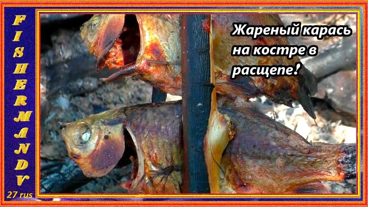 Жареный карась на костре в расщепе, Ловим и сразу вкусно готовим ! #20