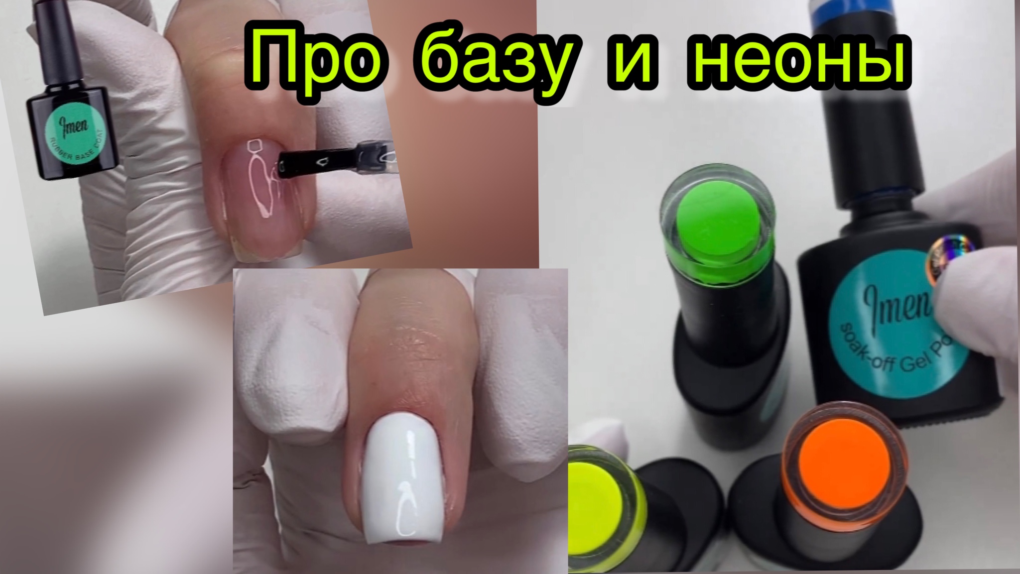 Rubber base coat IMEN Артикул на WB: 144772383 ?????? https://www.wildberries.ru/catalog/144772383/detail.aspx?targetUrl=MS&size=244131831 Идеальный белый IMEN 002 Артикул на WB: 14066688 ?????? https://www.wildberries.ru/catalog/14066688/detail.aspx?targetUrl=MS&size=42081751 Неоны IMEN ?????? https://imennails.ru/cat/gel-laki/ Онлайн магазин www.imennails.ru