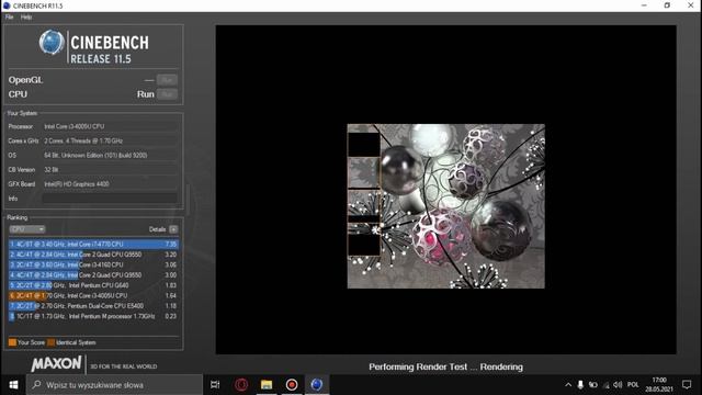 Cinebench R11.5 Intel Core i3-4005u