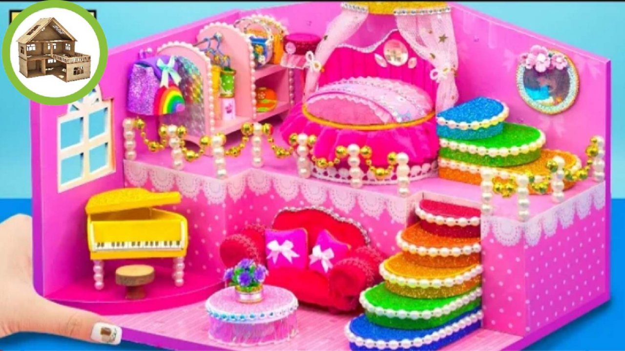 Миниатюрный королевский розовый четырех комнатный замок с кухней из картона /194