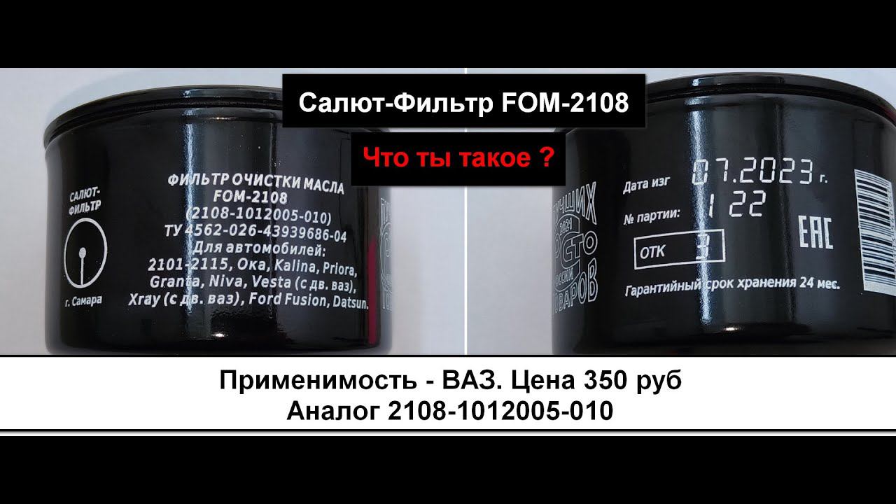 Салют-Фильтр FOM-2108 (2108-1012005-010) Фото и замеры http://www.oilchoice.ru/viewtopic.php?p=108674#p108674 Другие аналоги http://www.oilchoice.ru/viewtopic.php?t=7000 Канал в ТГ https://t.me/oilchoice_ru