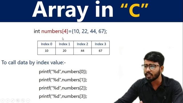 What is Array in C Language ? | C Language Free Course | by Rahul Sir Welcome to our channel, In this tutorial we will learn the basics & structure of Array for C Language. Array is one of the important term to learn and understand because in further programming array is most usable term while creating projects. Watch this video and learn the concept of array. ========================================================================== ????Complete C Language Course??????? 1) Introduction to C Language | C Language Course :- https://youtu.be/1m0TR_XbxNk 2) Low Level Language Vs High Level Language :- https://youtu.be/3r9eFcScatQ 3) Understanding the Structure of C | C Language Course :- https://youtu.be/XsM8y9g4X2Y 4) Comment in C Language | C Language Course :- https://youtu.be/6bC3jN5gfc8 5) Variable in C Language | C Language Course :- https://youtu.be/ngQw6hKiUcQ 6) Program to Add two numbers in C Language :- https://youtu.be/3_dPAOKGQGk 7) Keyword Vs Identifier | C Language Course :- https://youtu.be/_4TUqd2Ulm8 8) Data Types in C Language | C Language Course :- https://youtu.be/cl1HU5d69Is 9) Types of Error in C Language | C Language Course :- https://youtu.be/w7D1AMHuSmU 10) Constant in C Language | C Language Course :- https://youtu.be/JEV8JBOec_U 11) What is an IDE in C Language :- https://youtu.be/wbOicHdRlZs 12) What is Operator in C Language :- https://youtu.be/CX_w9lXIzq0 13) Relational Operator in C language :- https://youtu.be/GF6S3xVmchc 14) Logical Operators in C Language :- https://youtu.be/fwPRA0evpD8 15) IF Statement in C Language | All Types of IF :- https://youtu.be/UEg50IfiMmY 16) Switch Statement in C Language :- https://youtu.be/X5ZOc7-nJD4 17) While Loop in C Language | C Language Course :- https://youtu.be/I6yCbQJK7Qc 18) Do-While Loop in C Language :- https://youtu.be/ziniheAJE8I 19) For Loop in C Language :- https://youtu.be/XHFMLcx5sB4 20) Printing Table in C Language :- https://youtu.be/_ubuM73BkmM 21) Right Triangle Pattern in C Language :- https://youtu.be/VFAY3bNSrPo 22) Nested Switch Statement in C Language :- https://youtu.be/YXWtV4hu88o 23) Inverted Right Triangle Pattern in C Language :- https://youtu.be/a2GCCSnUbdQ 24) Mirror Triangle Star Pattern in C Language :- https://youtu.be/TAAbqWecGG4 25) Inverted Mirror Right Triangle Star Pattern in C Language :- https://youtu.be/YJm-W3-KO9A 26) pyramid star pattern in C Language :- https://youtu.be/TGad01w6dhs 27) Break & Continue Statement in C Language :- https://youtu.be/k7EqDUogljI 28) What is Function? || Function in C Language :- https://youtu.be/ACVd4pblGBg 29) What is Function Prototype? :- https://youtu.be/u1LgzR2UPtU 30) Swap Two Number in C Language :- https://youtu.be/c14KcCYZYl4 31) Program to Check Even & Odd in C Programming :- https://youtu.be/dPQVot0H3co 32) Inverted Pyramid Triangle in C Language :- https://youtu.be/vFcWdMg6IsQ 33) Hollow Square Pattern in C Language :- https://youtu.be/lhUsIFOGvw8 34) What is Array in C Language :- https://youtu.be/fu04NXbIeGo 35) Program of User Input in Array | C Language :- https://youtu.be/S54lUL5thGg 36) Program to Find Maximum Marks | C Language :- https://youtu.be/MDfYkYU0aBM 37) Exam Practice in Array | C Language Course :- https://youtu.be/FOF4IU6Tvbc 38) Multi-Dimensional Array in C Language :- https://youtu.be/WHAHvvJb1hs 39) String in C Language | C Language Course :- https://youtu.be/WcQFqa24Wa8 40) Input in String || scanf() Vs gets() | C Language :- https://youtu.be/TFwR5wvHPyo 41) What is the Use of string.h? :- https://youtu.be/8FXgYyMzMYA 42) strcpy() Function in C | String in C Language :- https://youtu.be/Nt5zNFr0gQA 43) strcmp() Function in C | String Functions in C Language :- https://youtu.be/7DO35S6Dqh4 44) strcat() Function in String || C Language :- https://youtu.be/xEs5O0iMLAk 45) strlwr() function & strupr() function :- https://youtu.be/eG0Mmtc4oX8 46) Structure Chapter in C Language :- https://youtu.be/AkB8ai3okNY 47) Typedef in C Language || Structure Chapter :- https://youtu.be/025pFwWJJcQ 48) Structure in C | Create Student Record in Structure |:- https://youtu.be/ZzX3tYxi6K0 49) Passing Structure as a Function :- https://youtu.be/fwIsVdNiHvg =========================================================================== Related Queries: c language full course, c language in telugu, c language programming, c language tutorial, c language in hindi, c language tutorial for beginners in telugu, c language tutorial for beginners, structure of c, structure in c, structure practical in c, structure practical, structure in hindi, structure in c programming, structure in c language, a structure in c language, structure in c for beginners, structure in c in hindi, structure in c language example #clanguageinhindi #clanguagesyllabus #clanguageguesspaper