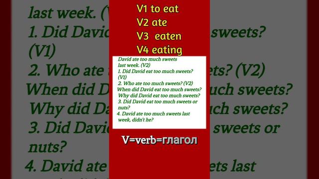 А Н Г Л И Й С К И Й: David ate too much sweets last week. (V2) 1. Did David..31 января 2023 г. 15:3