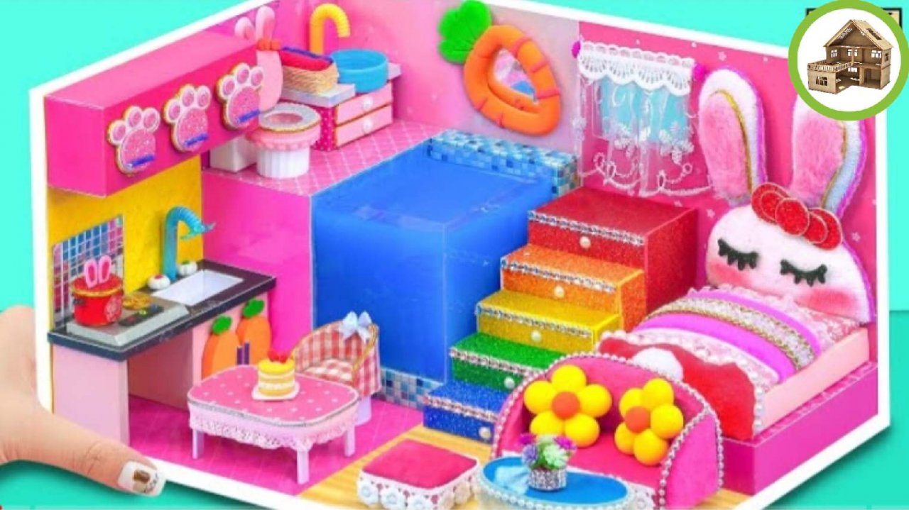 Самая симпатичную спальню кролика с кухней и с открытым бассейном из картона #46