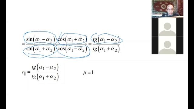 8 лекция, часть 2, Оптика, СПбГУ, 2021, Крылов И. Р., формулы Френеля (продолжение), амплитудные коэффициенты отражения и пропускания.