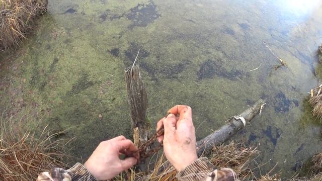Ставим проходной капкан на бобровой хатке.
