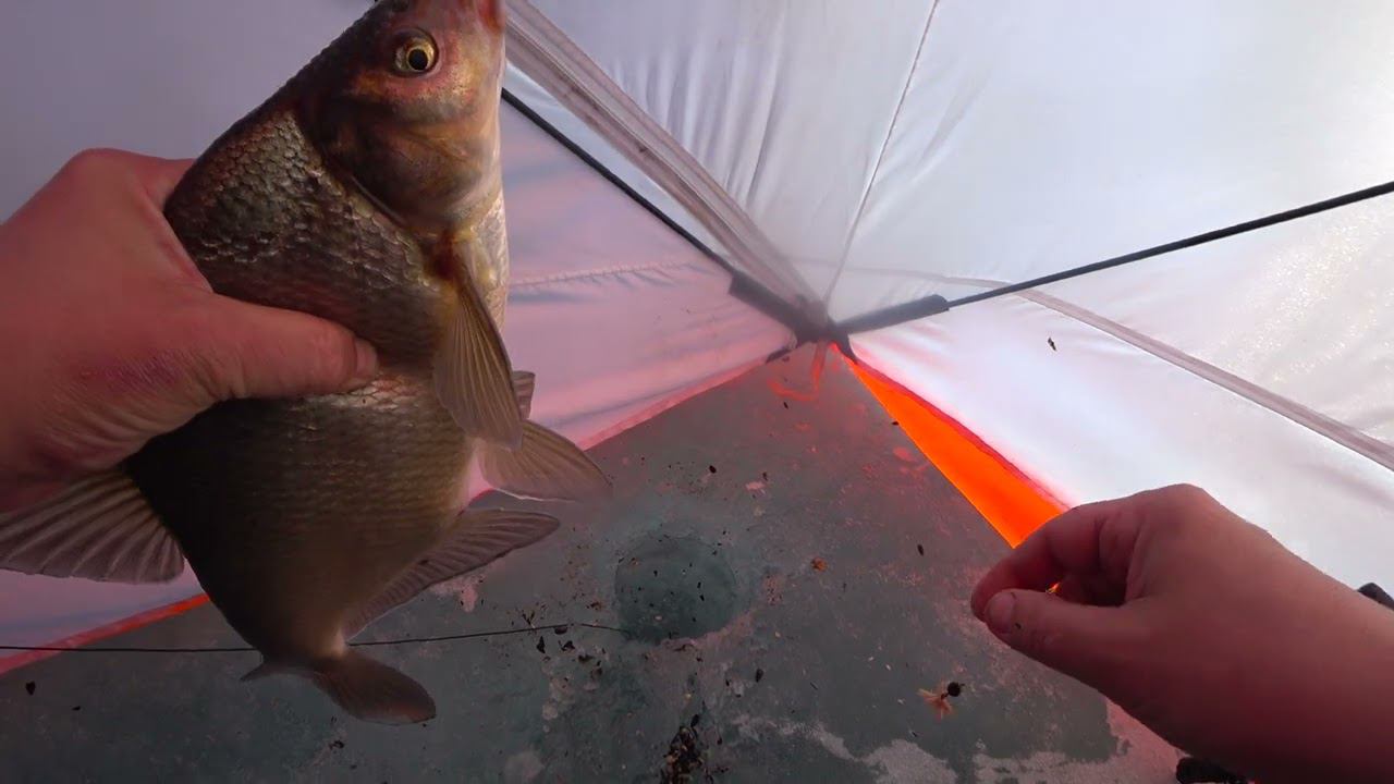 Приветствую , Вас, друзья!!! Рыбалка на Братском водохранилище в ветреную погоду, снова установил палатку , закормил лунки и наловил лещей.