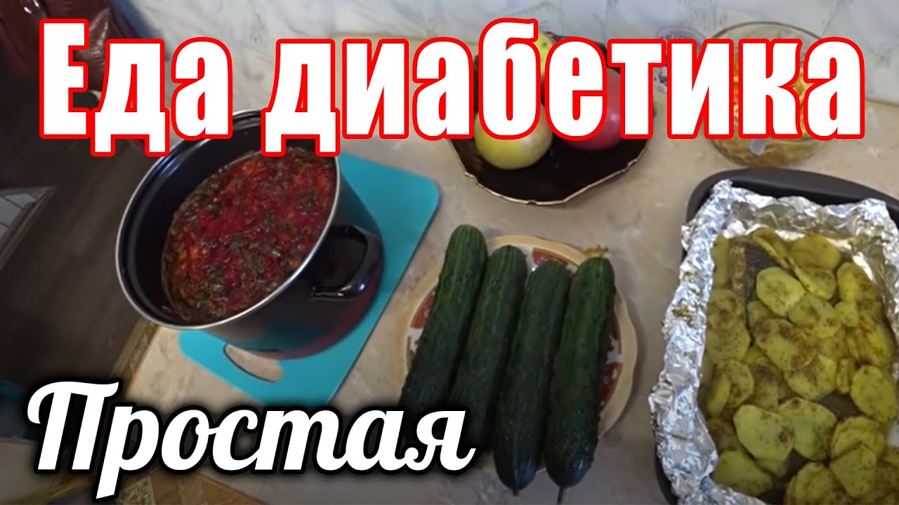Еда диабетика на весь день. Борщ, салат из кальмара, камбала с картошкой в духовке.