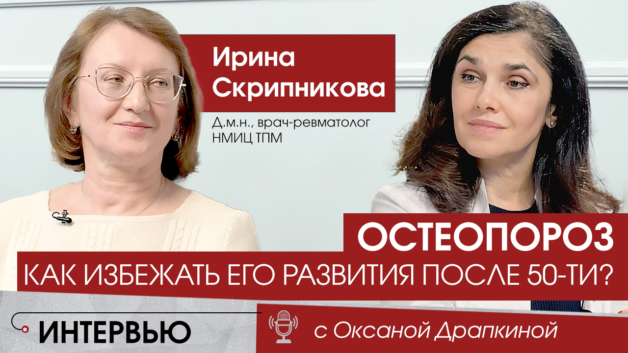 Остеопороз — заболевание, при котором кости теряют свою прочность, становятся более хрупкими и могут легко ломаться. Потеря костной массы происходит незаметно и часто диагностируется только после уже случившегося перелома. О причинах и симптомах заболевания, а также о правилах профилактики в интервью Оксане Драпкиной рассказывает врач-ревматолог, д.м.н., специалист по остеопорозу, руководитель отдела профилактики остеопороза и коморбидных состояний НМИЦ ТПМ Ирина Скрипникова. 00:00 – Что такое остеопороз? 02:58 – Симптомы остеопороза 07:42 – Профилактика остеопороза 09:30 – Диагностика остеопороза 11:40 – Советы эксперта ------------------------------------------------------------------------------------------------------------ Call-центр НМИЦ терапии и профилактической медицины +7 (495) 212 07 13 --------------------------------------------------------------------------------------------------------- Вы также можете подписаться на аккаунты профессора Оксаны Драпкиной На Яндекс.Дзен https://zen.yandex.ru/id/60f9c8ddc9561b3cbe44441f Telegram https://t.me/drapkinaom YouTube https://www.youtube.com/channel/UCzYJ5gQPfawINXrVGEC6QaA