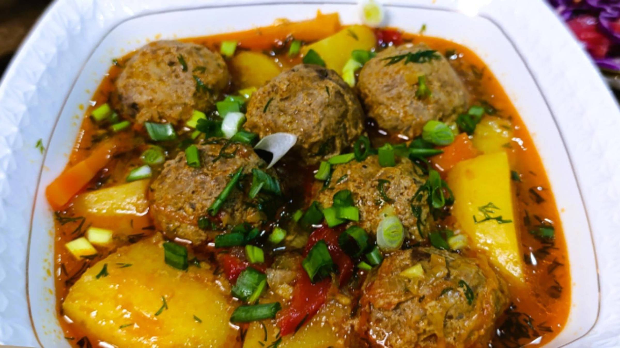 ТЕТФТЕЛИ С КАРТОШКОЙ. Добавляем любые овощи которые у вас есть в холодильнике. Любимые специи. 40 мин и блюдо готово. Ингредиенты 🪶 Мясо 500 г Яйцо 1 шт Картошка 4-5 шт Лук 2 шт ( 1 шт в фарш и 1 шт тушим) Морковь 1 шт Помидор 1 шт Чеснок 2 зубчика Болгарский перец 1 шт (не большой) Томатная паста 1 ст.л Соль, перец чёрный, кориандр молотый, зира, куркума щепотка. Укроп и лук зелёный. Вода . В Фарш + яйцо 1 шт + 1 зубчик чеснока + лук мелко нарезанный + специи ( я использовала соль, чёрный перец, молотый кориандр 1.5 ч.л ). Готовлю на медленном огне 40 - 45 мин. Таймер ставлю после закипания воды. Салат совсем простой. Краснокочанная капуста + помидор + зелень (у меня зелёный лук и немного укропа) + несколько ложек масла льна (можно заменить на любое) + соль и перец + немного винного уксуса ( любой уксус или сок лимона). 🎵🎵🎵🎵🎵🎵🎵🎵🎵🎵🎵🎵 Music from #Uppbeat https://uppbeat.io/t/northwestern/hey-ho License code: 2XUOPZ53JKGBIQ1O🤗Поддержите мой канал, досмотрев это видео до конца. Благодарю Вас! ❤️