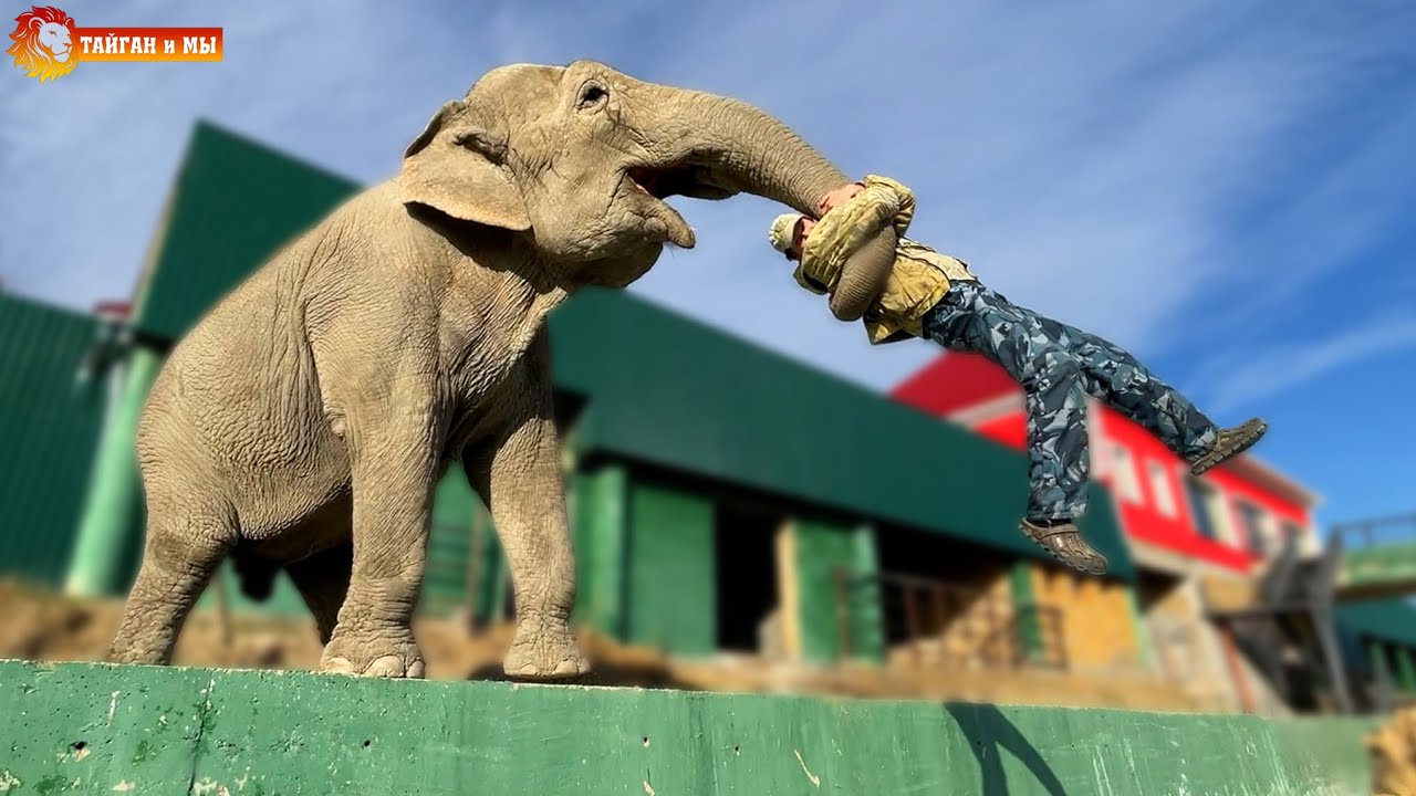 И тут Витя ПОЛЕТЕЛ ВВЕРХ! Слон запускает человека в космос!
