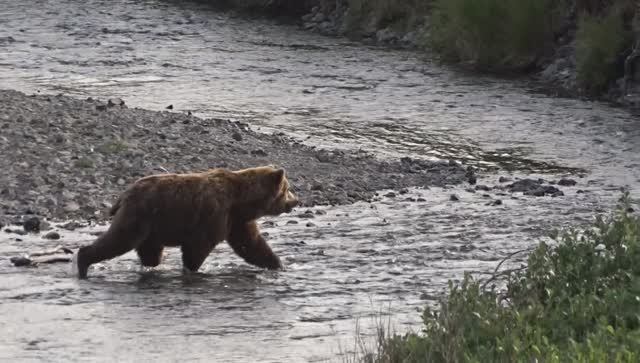 Полутонный медведь пришёл на рыбалку.