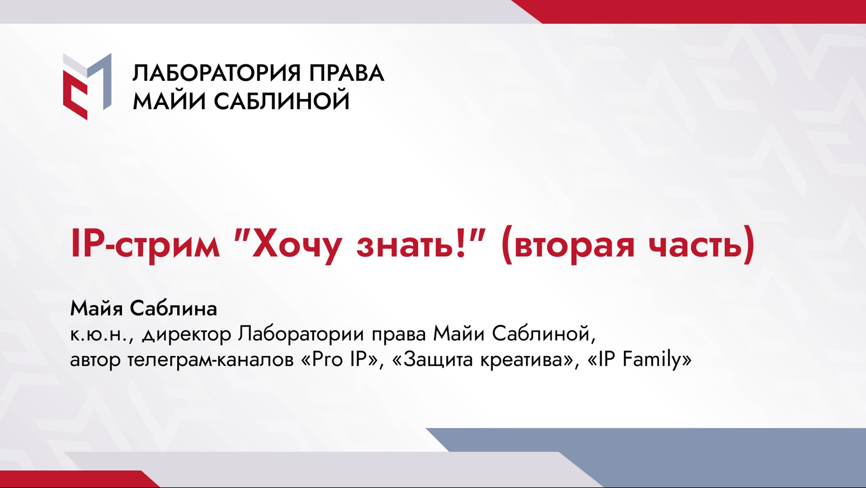 Вторая часть IP-стрима с Майей Саблиной по защите интеллектуальной собственности в формате «вопрос-ответ». 00:00 – приветствие 02:15 – совладение IP: интересные примеры из судебной практики (товарные знаки, музыкальные произведения, договоры и др.) 07:58 – насколько справедливо распределение прав на РИД при заключении соглашений о совместных разработках между бюджетными учреждениями и коммерческими организациями 12:05 – совладение частью программного обеспечения: есть ли риски у покупателя целого ПО, если часть принадлежит, в том числе, другому лицу 17:35 – неделимость исключительного права: возможна ли уступка права по соглашению об использовании и распоряжении РИД, заключённому между правообладателями 22:26 – установление однородности товаров и услуг 28:00 – когда юристу пора начинать практиковать защиту интеллектуальной собственности 37:38 – недопустимость отчуждения исключительного права на товарный знак по договору по причине введения потребителя в заблуждение 42:20 – лайфхаки и практика доказывания общеупотребимости обозначения, значимость соцопросов 52:00 – заинтересованность по ст.1483 и 1486 ГК РФ: аннулирование товарного знака и прекращение вследствие его неиспользования 57:27 – о судьбе служебных произведений, созданных работниками в процессе выполнения трудовых обязанностей в советский период 01:01:17 – нюансы в споре о признании регистрации товарного знака актом недобросовестной конкуренции 01:09:08 – анонс третьего потока курса “Практические аспекты защиты интеллектуальной собственности” 01:10:50 – итоги Подписывайтесь на телеграм-каналы Майи Саблиной по IP-тематике: Pro IP – https://t.me/ipmir Защита креатива – https://t.me/ipprotection IP Family – https://t.me/ipfamily #вебинар #ндк #ст1486 #пазис #служебные #заинтересованность #однородность #отчуждение #совладение